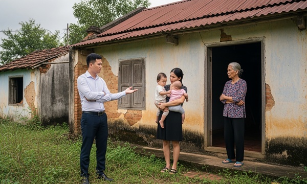 – Căn biệt thự ngay trước mặt anh kìa, mới xây xong, trị giá ba tỷ. Đấy mới là nhà thật của bố mẹ tôi. Ngôi nhà cũ này bố mẹ tôi giữ lại làm kỉ niệm để không quên thời khốn khó thôi. Người quê sống thật thà tình cảm, đâu như người thành phố các anh…
